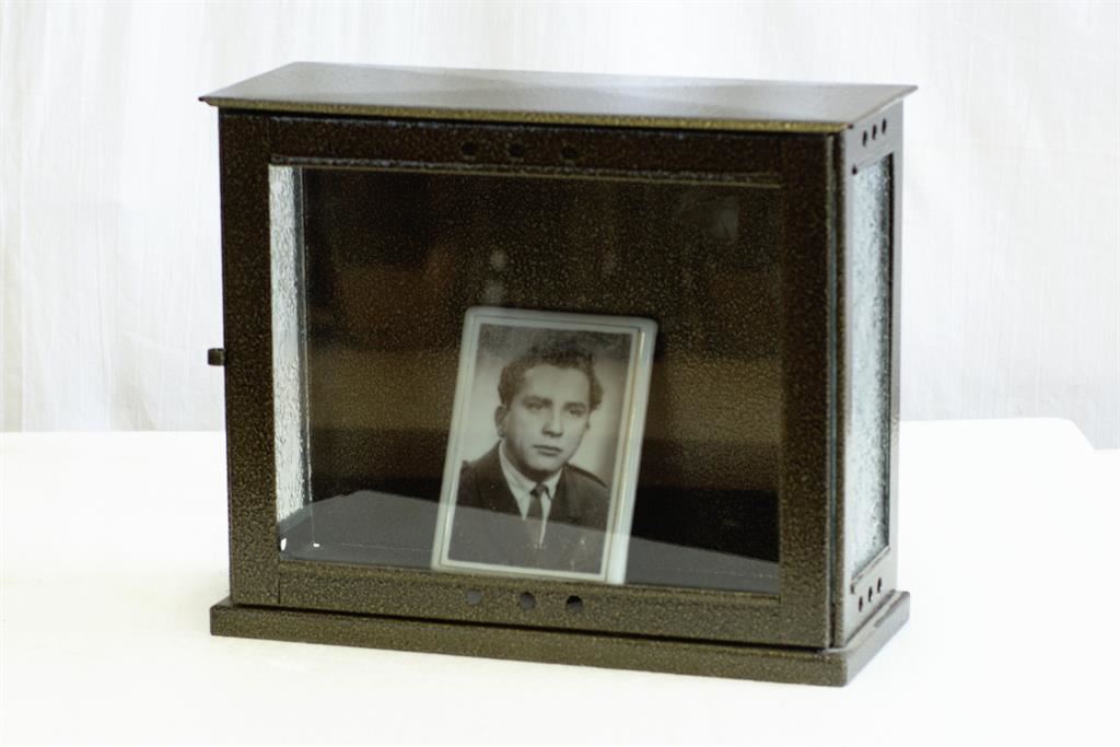 Náhrobní fotoskříňka v povrchové úpravě starozlato o rozměrech šířka 10,5 cm,výška 21,5 cm a délka fotoskříňky je 26 cm. Do fotoskříňky je možné vložit jednu nebo více fotografií v rámečku či v malém stojánku na fotografie. Náhrobní fotoskříňka má zavírací mechanizmus, který zabrání samovolnému otevření dvířek skříňky.