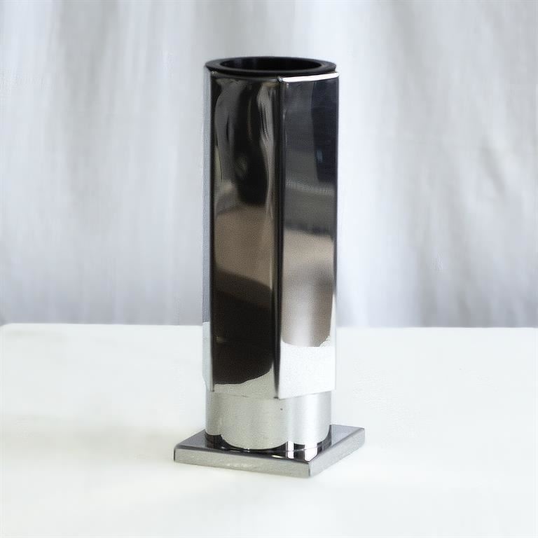 Náhrobní váza nerezová velká bez kytky má na šířku 8,9 cm a na výšku 24 cm. Váza je hladká, bez plastik a motivů.