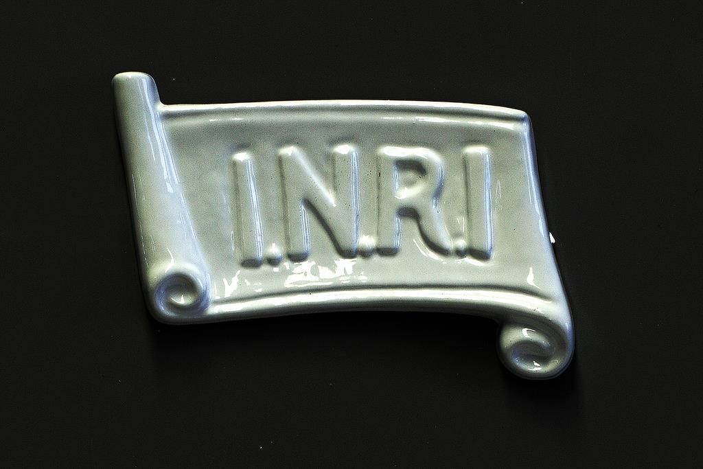 Plastika s nápisem "INRI" velká v bílém provedení má rozměry šířka 7,5 cm a výška 5 cm a využívá se na hroby, hrobové desky, pomníky, kříže a další místa. Bílá plastika je odolná povětrnostním vlivům po dlouhou dobu.