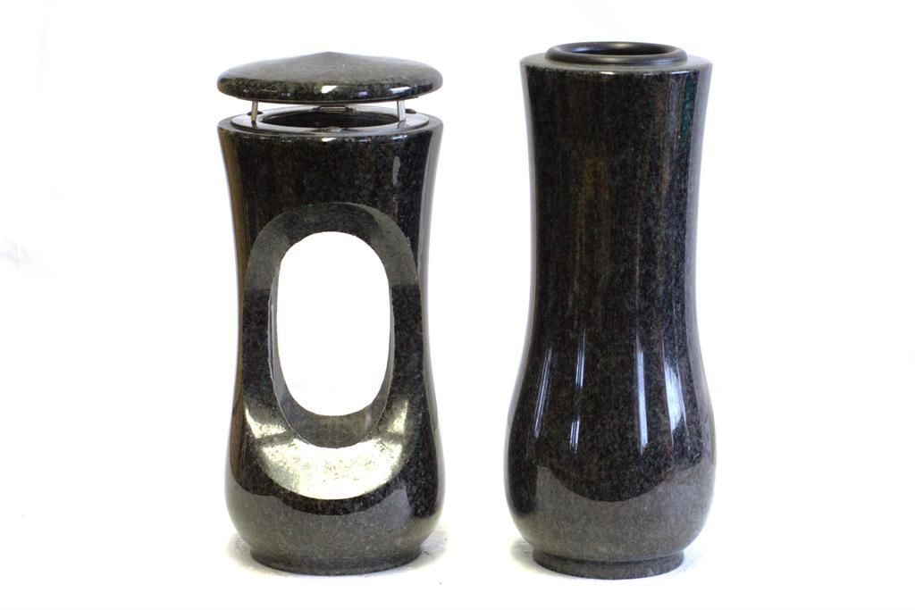 Sada kamenná svítilna a váza ve stejném provedení a materiálu žula Impala určená na pomník nebo na hrob. Komplet je možné objednat pouze v provedení z přírodní žuly Impala.