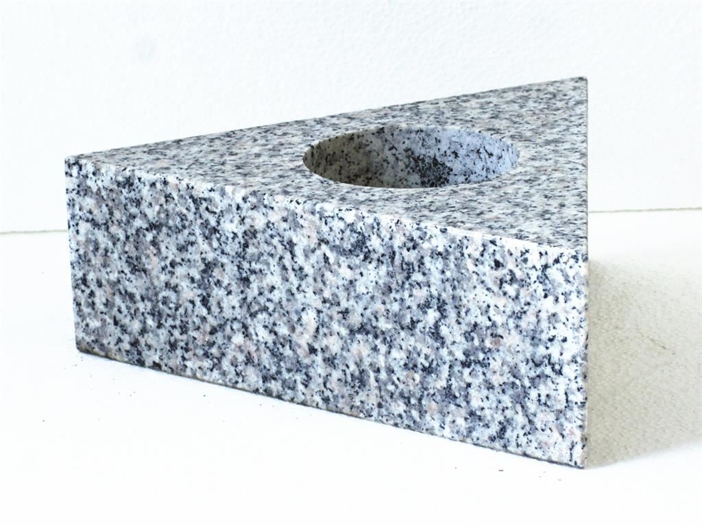 Rozměr tohoto trojúhelníkového stojanu na vázu je 28,5 cm, výška 10 cm a průměr otvoru je 10 cm.