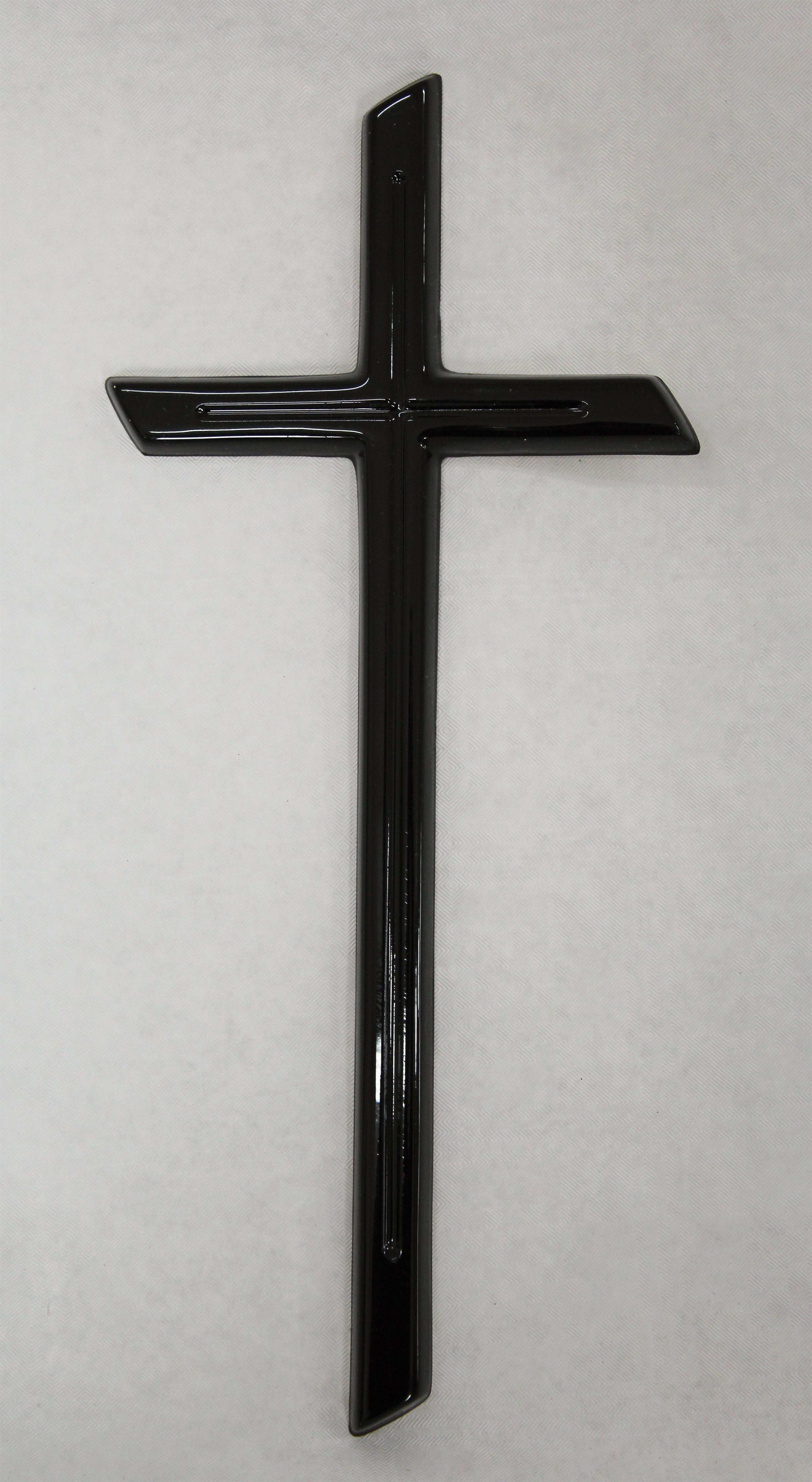 Křížek z pryskyřice, povrchová úprava černá. Výška křížku je 30 cm, šíře je 13 cm.