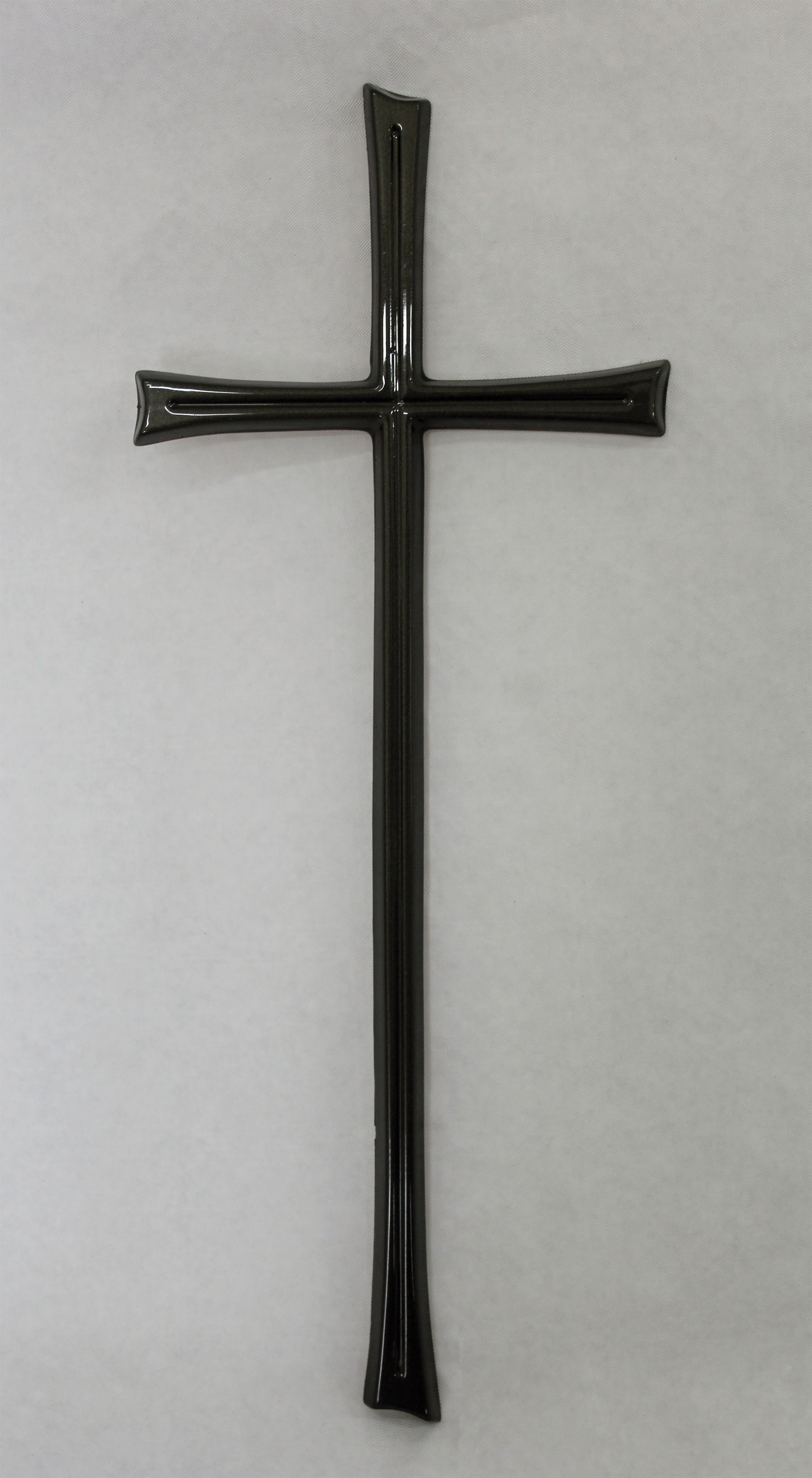 Křížek z pryskyřice, povrchová úprava šedá. Výška křížku je 40 cm, šíře je 15 cm.