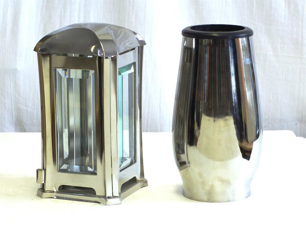 Komplet kovová lampa a váza na hrob v luxusním provedení s povrchovou úpravou nerez.
