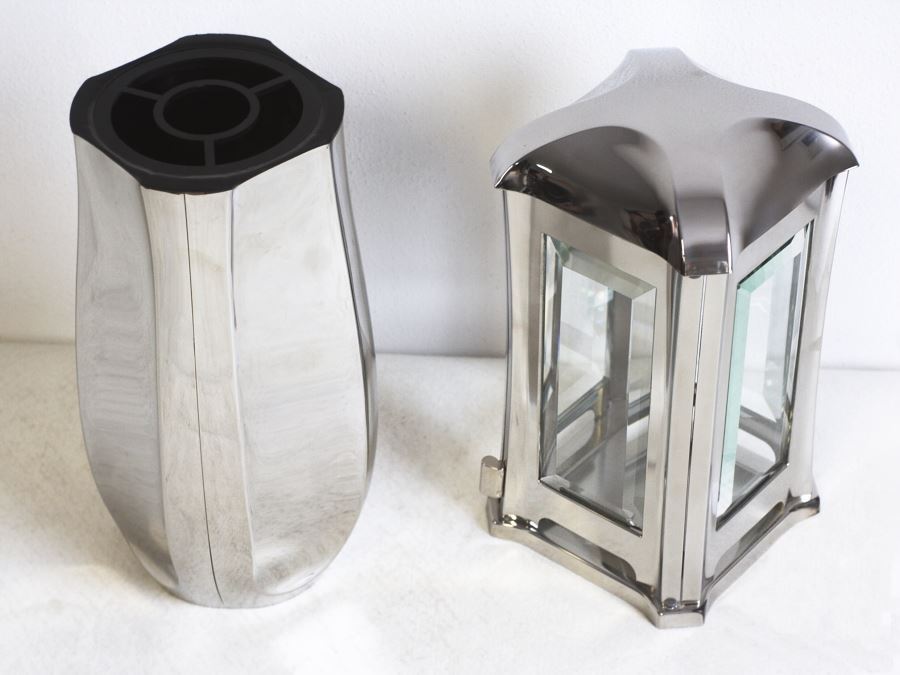 Komplet kovová lampa a váza na hrob v luxusním provedení s povrchovou úpravou nerez.