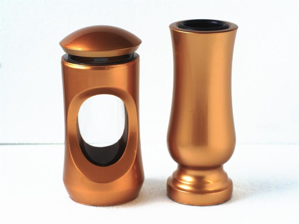 Lampa na hrob má průměr 11,5 cm a výšku 26 cm. Váza má průměr 10 cm a výšku 27 cm.