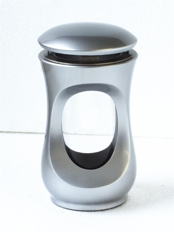 Smuteční lampa na hrob je vyrobená ze speciální pryskyřice s povrchovou úpravou imitující stříbro. Rozměry této menší verze smuteční náhrobní lampy jsou průměr 11 cm a výška 21 cm.