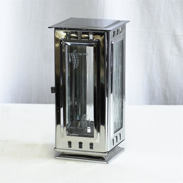 Náhrobní lampa nerezová malá s ozdobným motivem. Rozměry lampy jsou 8,8 cm na šířku a 21 cm na výšku. Lampu je možné postavit na pomník nebo hrob. Do náhrobní lampy je možné vložit a zapálit v ní smuteční svíčky maximálně do výšky 5 cm. Při použití vyšších svíček hrozí poškození lampy plamenem.