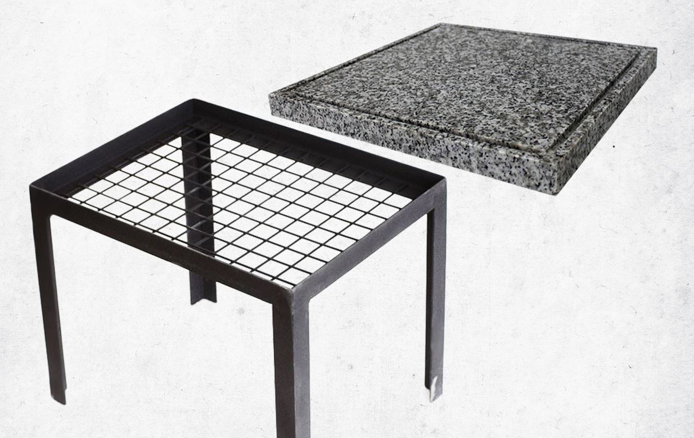 Železný stojánek je vyrobený tak aby do něj grilovací, pečící kámen přesně zapadl