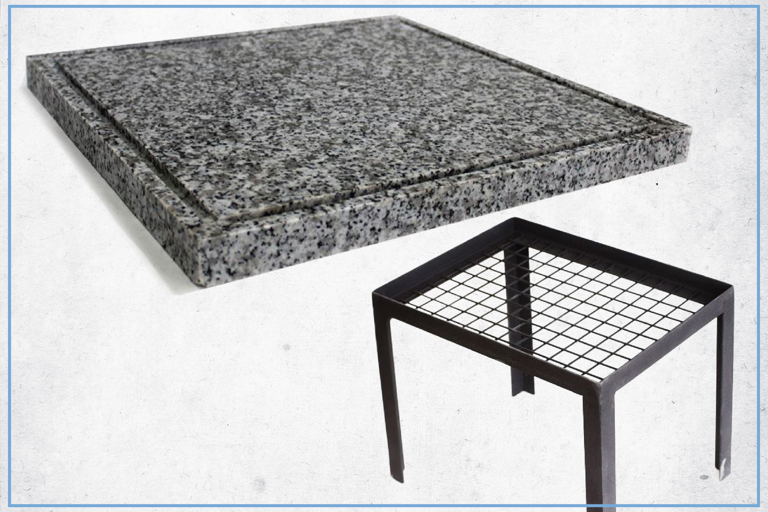 Grilovací, pečící kámen v železném stojánku je ideálním řešením v případě, že grilovací, pečící kámen není napevno zabudovaný v grilu, troubě nebo nad oheň, ohništěm a po každém grilování se uklízí nebo když jej převážíte z domu například na chatu, na dovolenou.