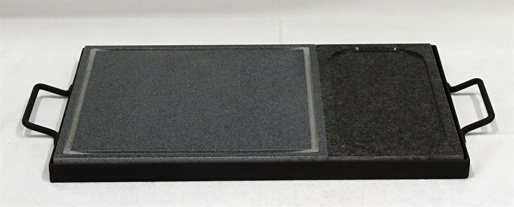 Pečící, grilovací kámen ze dvou kusů kamene s různým provedením pečící, grilovací plochy. Pečící kameny jsou umístěny v rámečku s madly pro uchopení v případě, že se kámen přenáší. Rozměry pečících kamenů jsou k celkové ploše v poměru 2:3. Rozměr jednotlivých pečících kamenů je 20 x 40 cm a 30 x 40 cm. Je možné si vybrat ze všech existujících kombinací pečících kamenů v provedení hladký, s drážkou nebo prohloubený. Tento typ kombinovaného pečícího, grilovacího kamene si můžete objednat i ve světlém provedení a nebo v provedení kdy jeden pečící kámen je světlý a druhý tmavý.