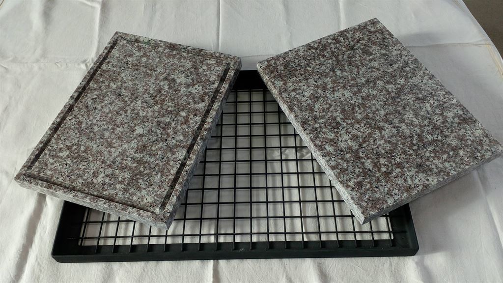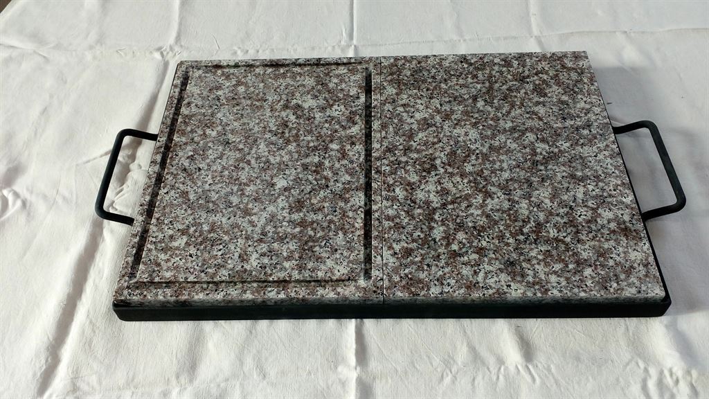 Pečící, grilovací kámen ze dvou kusů kamene s různým provedením pečící, grilovací plochy. Pečící kameny jsou umístěny v rámečku s madly pro uchopení v případě, že se kámen přenáší.. Rozměry obou pečících kamenů jsou k celkové ploše v poměru 1:1, plocha celého pečícího kamene je rozdělena na dvě poloviny. Rozměr jednotlivých pečících kamenů je 30 x 40 cm. Je možné si vybrat ze všech existujících kombinací pečících kamenů v provedení hladký, s drážkou nebo prohloubený. Tento typ kombinovaného pečícího, grilovacího kamene si můžete objednat i v tmavém provedení a nebo v provedení kdy jeden pečící kámen je světlý a druhý tmavý.