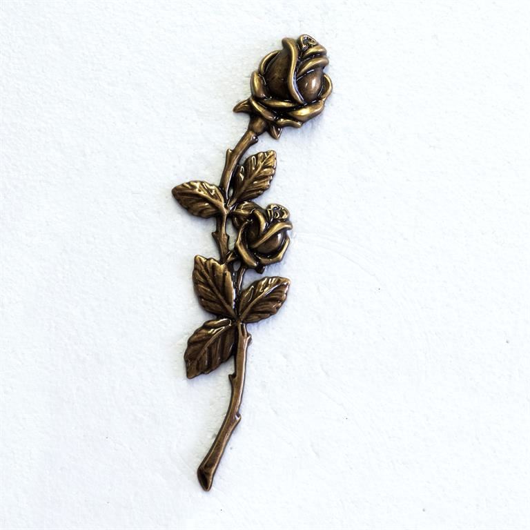 Bronzová plastika smuteční růže s jedním poupětem. Výška plastiky je 21 cm. Smuteční a náhrobní plastiky z bronzu jsou velmi odolné povětrnostním vlivům a snadno se udržují.