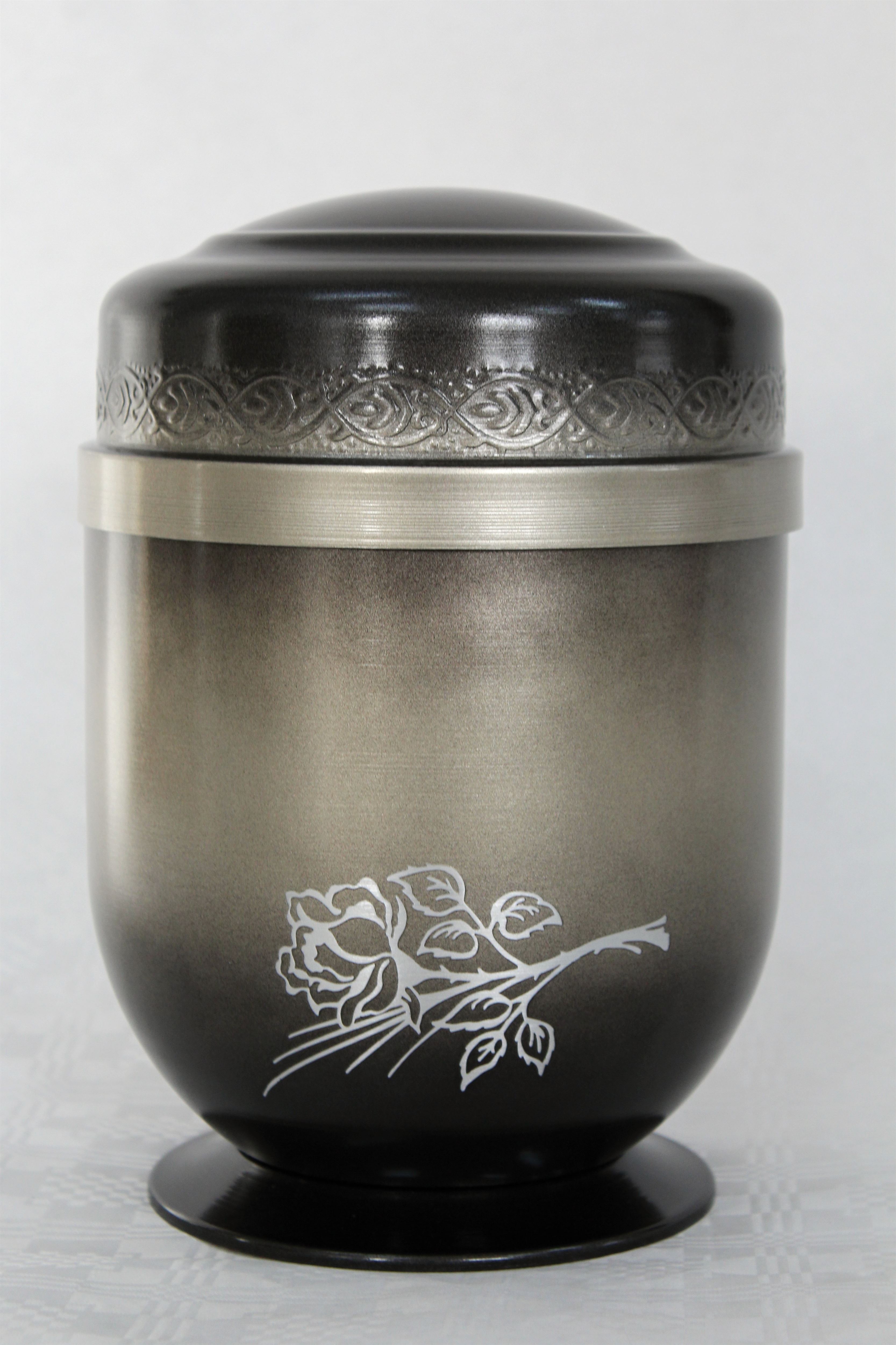 Urnový obal, pohřební urna hliníková v šedém provedení.