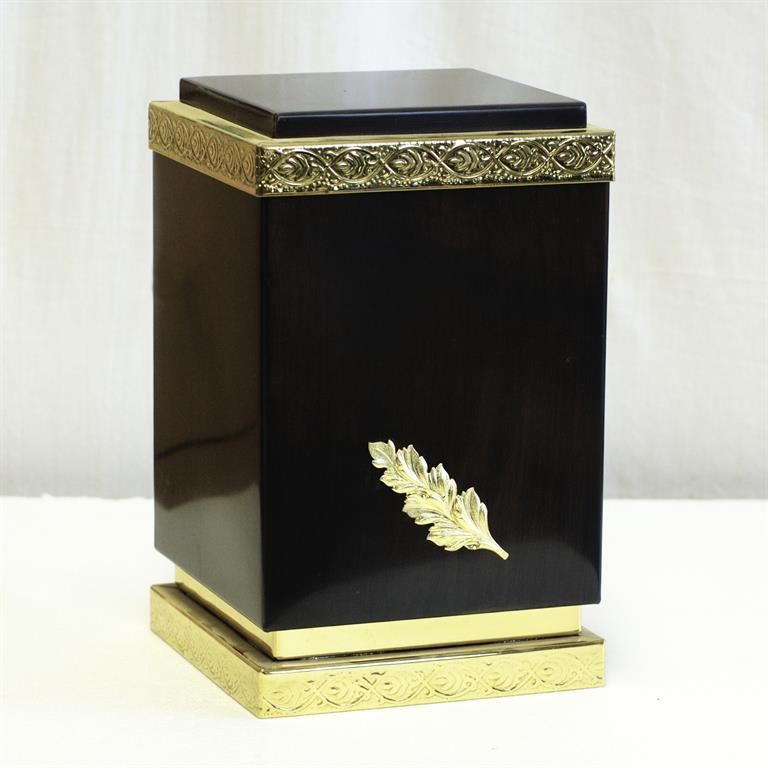 Hliníková pohřební urna hranatá se zlatou ratolestí. Urna o rozměru šířka 17 cm a výška urny je 27 cm. Do této hliníkové urny je možné přímo vložit pouzdro s popelem zesnulého.