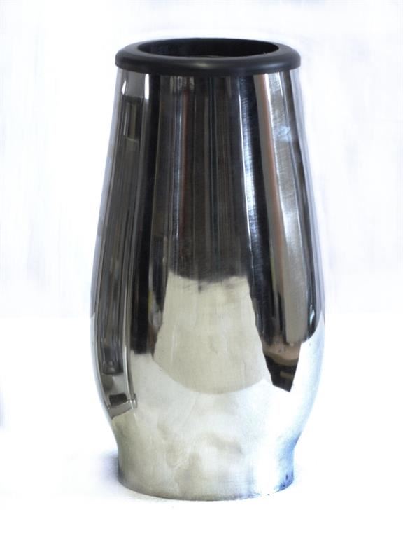 Kovová váza na hrob luxus s povrchovou úpravou stylu nerez má rozměry: průměr vázy 12 cm, výška 23,5 cm. Vázu lze zakoupit samostatně a nebo v kompletu s lampou stejného typu a vzhledu v sekci „Hřbitovní lucerny a vázy“.
