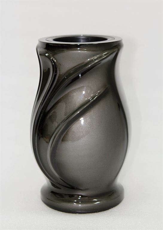 Náhrobní váza vyrobená ze speciální pryskyřice v povrchové úpravě imitující metal.